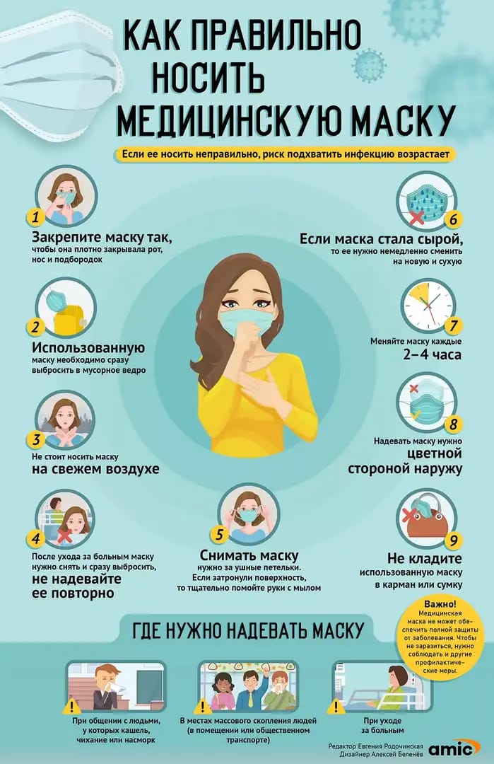 В сочетании с тщательной гигиеной рук и карантинными мерами маска максимально снизит риск заражения гриппом, коронавирусом и ОРВИ