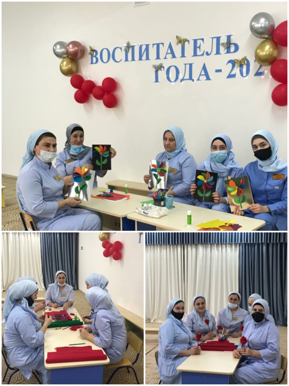 В рамках профессионального конкурса "Воспитатель года-2021" воспитателями ДОУ Ш.И.Алабаевой и М.М.Сайдселимовой проведены мастер-классы с педагогами ДОУ.