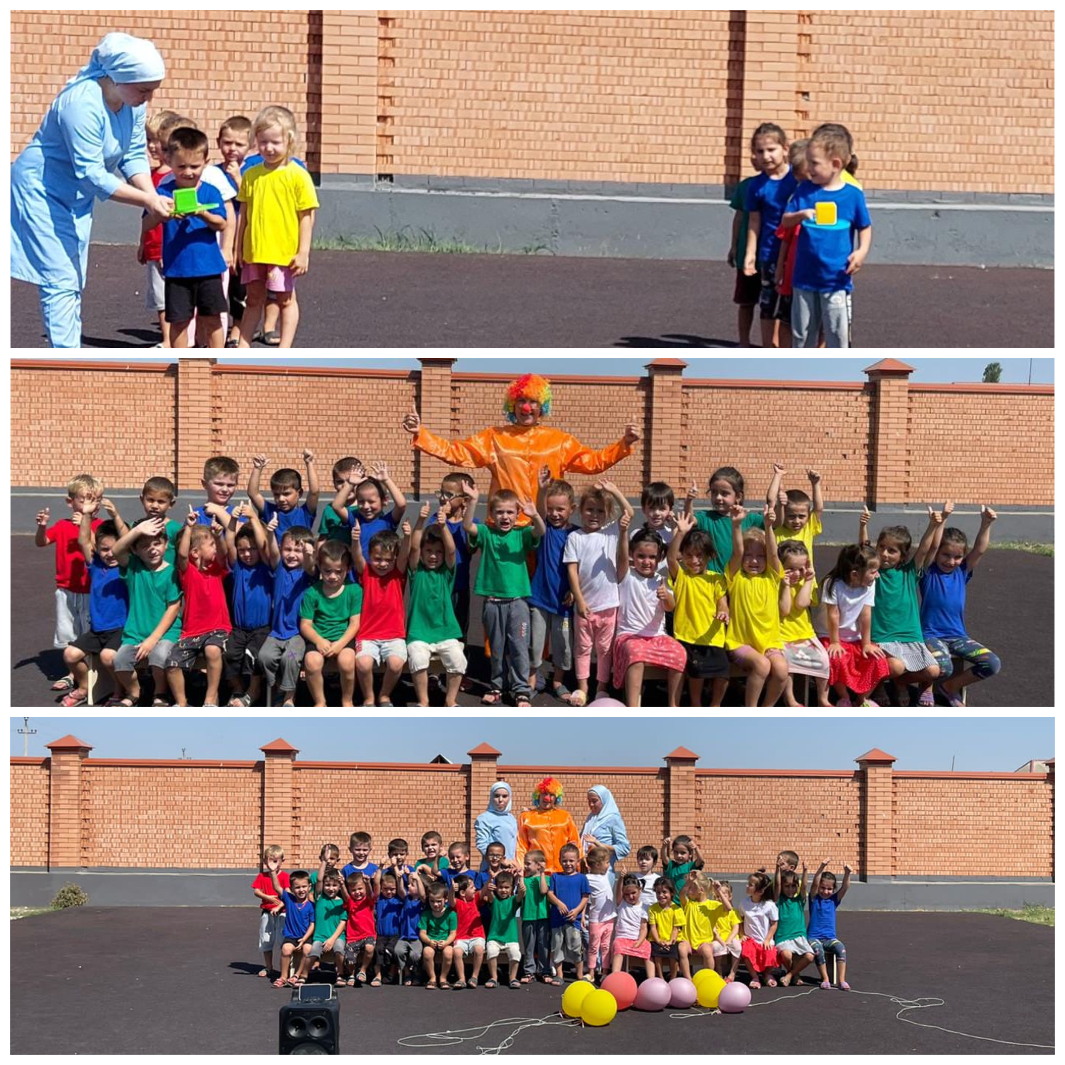 31.08.2022Вот и наступила пора попрощаться с летом. В последние дни уходящих теплых дней в нашем детском саду №1"Илли" воспитатели средней группы "Непоседы" подготовили для ребят небольшое представление «До свидания, лето!». В гости к детям прибегал КЛОУН, который произвёл много радостных впечатлений. Вместе с клоуном ребята путешествовали на поезде. После все вместе играли в танец-игру: «Ау!», которую услышало Лето. Оно пришло попрощаться с детьми. Но, сначала все вместе танцевали, отгадывали загадки, пели песни. Представление прошло весело, дети получили большой заряд бодрости, доброты и радости.